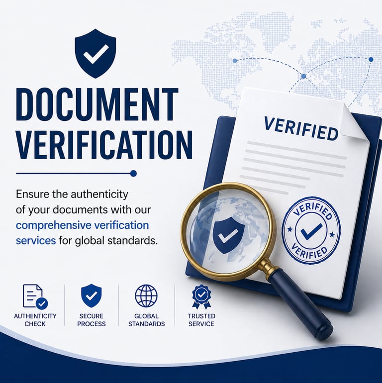 Ensure the authenticity of your documents with our comprehensive verification services for global standards.