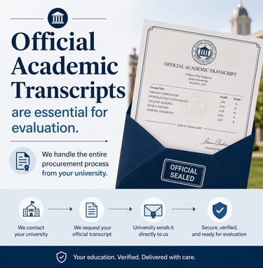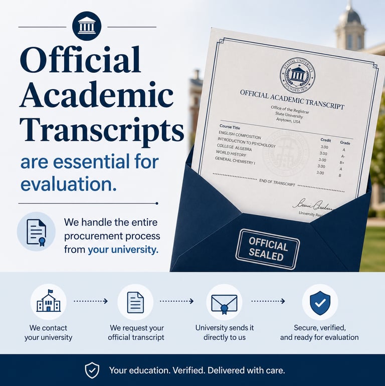 Official academic transcripts and e-transcripts from universities worldwide, delivered securely to evaluation agencies and institutions.