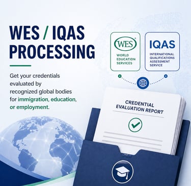 • 🌐 WES / IQAS Support – Guidance for the right assessment authority